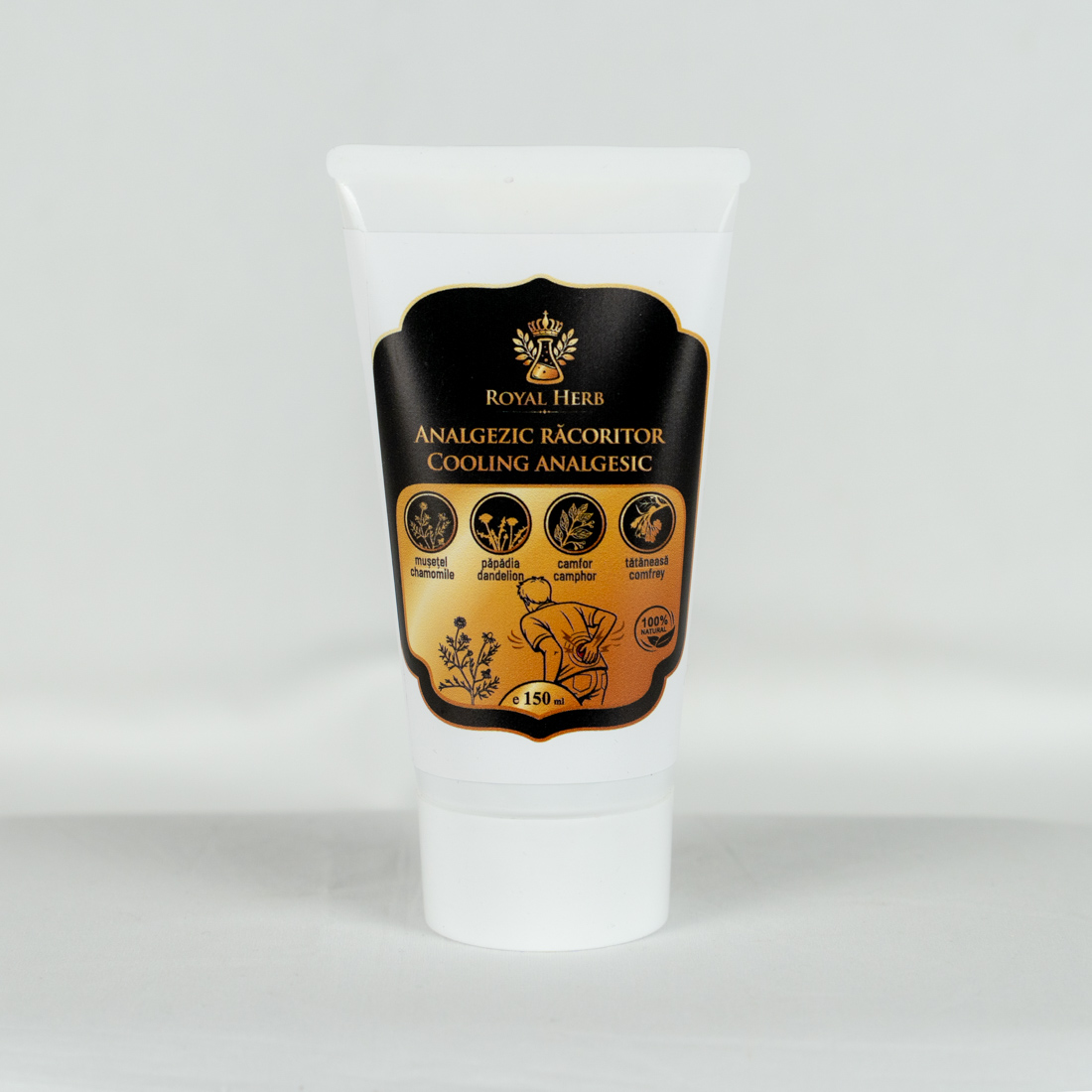 Ingrediente: Aqua, Guma Xantan, păpădia (Taraxacum officinale), tătăneasă(Symphytum officinale), scoartă de salcie(Salix Alba), arnică(Arnica montana), urzică vie(Urticae herba), flori de lavandă(Lavandula sngustifolia Mill), coada șoricelui(Millefolii herba), gălbănele(Calendula officinalis), flori de mușețel(Chamomillae), salvie(Salviae herba), ulei esențiale camfor, menthol, ulei esențiale de grapefruit, ulei cimbru, ulei eucalipt.